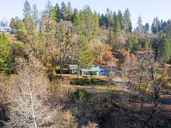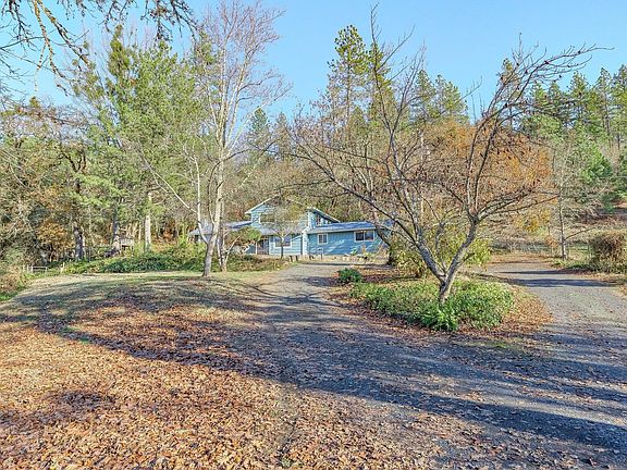 This house has character! Beautiful custom 4 bed/2 bath home on 3 acres with Applegate riverfront & water rights! Enjoy cozy living room with pellet fireplace and amazing panoramic view of the valley! Large family /entertainment room with beamed ceiling, cute built in wall shelves and wood accents. Convenient dining room and breakfast nook on sides of the kitchen. Master bedroom on first floor. Extra mud/storage room. Two car garage has shop area and a lot of shelves for your tools. Property gated with fenced areas for your small animals or gardening. Lovely fish pond in front and large deck on the back . Plenty of parking space. Property need some TLC, including carpet replacement in some areas. With acceptable offer, seller will give a $5000 allowance for buyer to make it perfect! Enjoy your time by the river, privacy and peaceful country living in the heart of Applegate Valley!