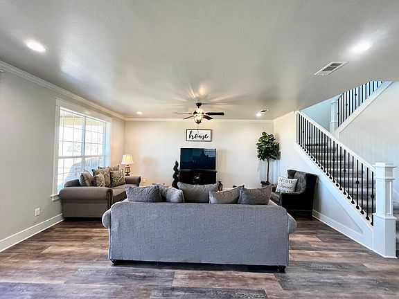 Beautiful 4 bedroom, 2.5 bath home with an office. This house features LVP flooring throughout the entire first floor, the kitchen has so much cabinet space, a gas range and a second built in oven, all of the appliances are stainless steel, a pantry and a huge island. The first floor has a great open floor plan, there is a 2 story tall entryway, a gorgeous staircase, all of the bedrooms are upstairs and so is laundry room. The primary bedroom is large, with an amazing bathroom with a full wet room, double sinks, a private water closet, so much storage and a large closet. The lot is fully landscaped with a sprinkler system, sod and flowerbeds.