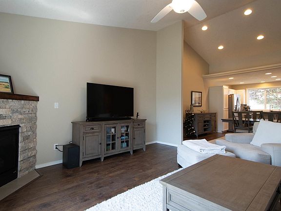 Discover this updated single-level home with a split floorplan. The primary suite features an ensuite bath with a step-in shower. Enjoy laminate flooring throughout the living areas & primary, vaulted ceilings, & plenty of natural light. A bright living space opens to a manicured yard & large covered patio, ideal for relaxation & entertaining. The kitchen boasts granite counters, & there’s RV parking & a fully fenced yard. Located just a block from the community park, this home blends comfort & convenience.