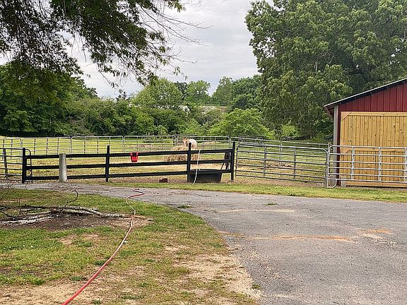 One mile to hospital or Wal Mart. 4 bedrooms 2 baths, hardwood floors in den and master bedroom. New laminate flooring in 3 bedrooms. Fenced in pasture with pond and 40x50 barn.