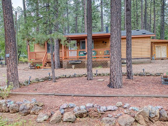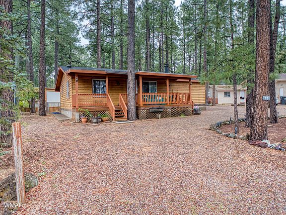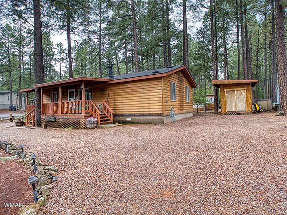 Charming, manufactured home tucked away amongst the tall Ponderosa Pinetree's in Pinetop! This home features exterior wood siding, circular driveway, great curb appeal with beautiful landscaping, nicely sized covered front porch, two storage sheds, vaulted ceilings, open kitchen, gas fireplace, laminate and carpet flooring and a walk-in master bedroom closet to name a few! This home also comes completely furnished. The seller is only willing to sell the home in AS-IS condition. This beautiful home will not last long! Call today to schedule an appointment. Sunrise Ski Resort is only 20 minutes away where you can enjoy skiing, snowboarding and sledding on the three different mountains available with the highest peak at 11,000 elevation and 62 different runs. During summer they offer archery shoots, the largest zip lining course in the state of AZ, hiking and biking. This home is also very close to more than 34 lakes and reservoirs and over 320 miles of beautiful streams and rivers which consists of many different species of fish. Perfect for fishing, fly fishings, boating and sightseeing. There are more than 180 miles of hiking trails within the region. Most trails were once old logging roads between eight and 16 miles in length and ranging in elevation from 6,500 feet to over 11,000 feet. A large number of animal species live in the area from Bull Elk, Mule Deer & Coues Deer, Turkey, Antelope, Brown Bears and much more! The White Mountain area is definitely a place you should be considering for your primary/secondary home location!
