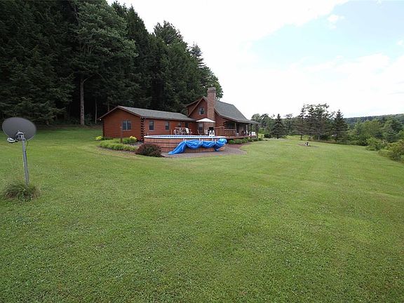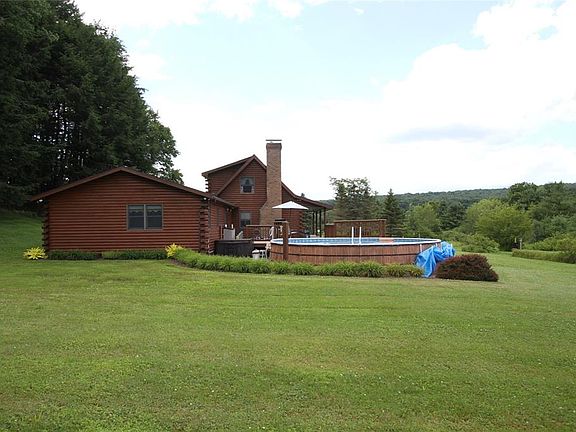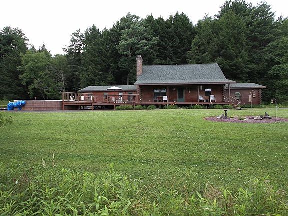 Owner says sell! Here's your chance to own a fabulously maintained quality log home situated on a beautiful 20 acre parcel has 700' long drive keeps house hidden from road view. Enjoy privacy on the deck or porch with wonderful views all around and an active eagles nest in trees behind house. Propane fireplace in living room, loft open to dining space, three nice size bedrooms and three FULL baths, one with spa tub. Stormy weather not a concern when you have a Generac whole house generator. Attached garage is super clean! This is not a traditional log home, it is log sided but you can't tell the difference. New super septic system installed 2019 with aerator, freshly oiled/stoned parking area by house (just past rail fence), hot tub, above ground pool, B-dri system with battery back-up and transferable warranty, boiler inspected and serviced each year, water heater is internal coil from boiler. House just 6 miles to 1000+ acre state game lands.