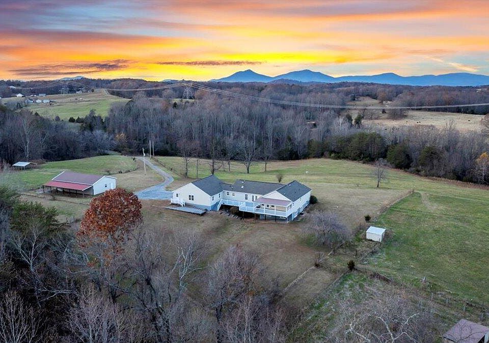 Welcome to your private country sanctuary--an expansive 80-acre estate in picturesque Bedford, VA. This rare offering blends a well-appointed home with exceptional land, featuring rolling pastures, mature woods, trails, creek frontage, and amazing mountain views of the Peaks of Otter. The residence offers generous living spaces, multiple bedrooms and baths, and abundant natural light--ideal for country living, multigenerational living, and hosting guests. Nearly 80 acres of fenced pasture support cattle, horses, goats, or other livestock, while wooded areas create excellent hunting and recreation opportunities. Perfect for farming, homesteading, camping, or off-grid living. Peaceful, private, and just minutes from town.