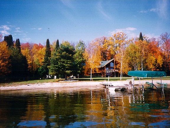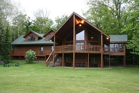 Anvil Lake Retreat. This unique waterfront home is nestled in Eagle River, Wisconsin and tucked away on over 6 wooded acres on the western shore of Anvil Lake. This cedar-sided chalet offers spectacular waterfront views and easy, private access to a level sand beach with 230 feet of crystal clear frontage. The property offers 6 bedrooms, 3.5 baths, 3 additional lots for your privacy, a 3 car heated attached garage, a 32 x 50 storage building with 200 AMP electricity, your own long winding private drive, and so many additional amenities that I can’t mention them all here. The main level has your master bedroom suite, a 3 season sun porch, cathedral ceilings in your kitchen and great room & a revolving entertainment center and double sided fireplace between your living room and your den. This glass wrapped space offers unprecedented views of the sun rising over your park like backyard bordered with pines for privacy. The remainder of the home, as well, offers a level of living seldom seen in our Northwood’s so you need to come and see this property for yourself. Your location here is also ideal for the outdoor enthusiast. You are surrounded by National Forest and yet only 10 minutes from town. This is truly a rare find so come and take a peak today!!