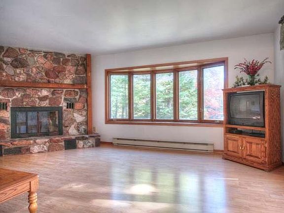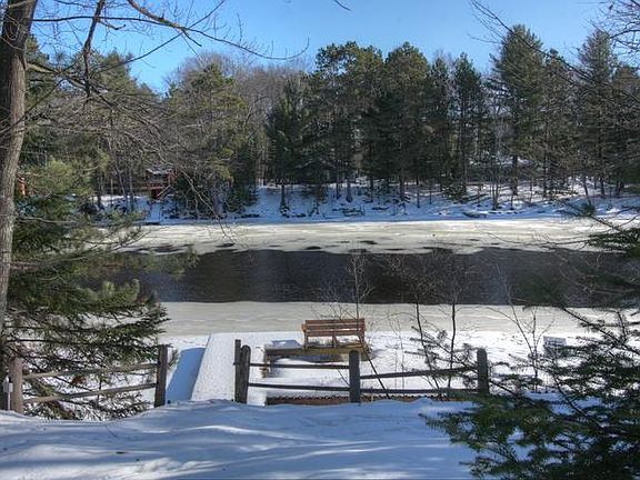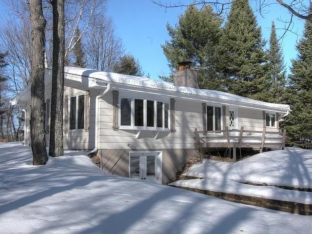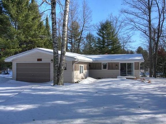 BETWEEN OTTER and EAGLE LAKES - The historic Morey Road area is home to this fantastic property on the Eagle River Chain! This ranch style home has a full masonry, wood burning fireplace, full walkout basement, main floor laundry, 2+ car attached garage and blacktopped driveway. The main level includes two bedrooms, third bedroom/office with a doorway for direct access the deck, a full bath with tub and shower, plus the living, kitchen and dining areas. Downstairs is a full, unfinished basement with poured concrete walls. There are double doors with a walkout toward the shore, where there is a permanent pier and 123 feet of sand bottom shoreline. Morey Road is a "no thru" road so traffic is minimal. This location is very quiet, peaceful, and inhabited by many deer!