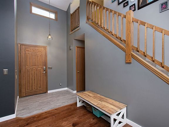 Check out this move in ready home in the Maize School District! This one will wow you as soon as you enter with the high vaulted ceilings, nice open floor plan, and the fireplace as the focal point. This home has been updated with new flooring and interior paint. The kitchen is large with many cabinets and countertop space, and all appliances stay! There is a separate dining space and an eating bar as well. The master bedroom is on the main floor with a private en suite bathroom featuring double sinks! And, talk about a "split floor plan," the other two bedrooms are upstairs! Downstairs is the perfect spot relax or entertain! The family room is huge, and there is a wet bar for more fun. There is a non-conforming bedroom, third full bathroom and laundry in the basement as well. As you head to the backyard, you will love the private deck area. The yard is fully fenced and there is a sprinkler system to boot. NO SPECIALS!! Set up your private showing today. Siding will be replaced on 2nd story east wall prior to closing.