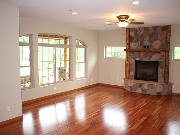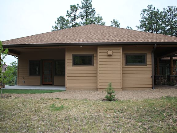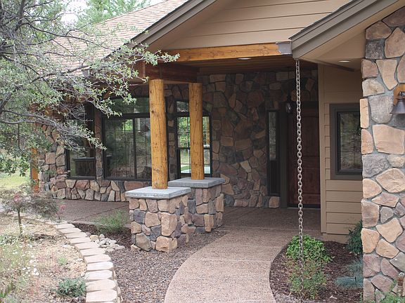 Brand new single level home in the tall pines of highly desired TimberRidge. Custom built 3br 2 bath loaded with upgrades. Wood doors, energy efficient gas fireplace, and wood floors throughout the main living. Knotty Alder cabinets and granite countertops in the spacious kitchen. His and hers walk in closets. Rustic construction with beautiful stone and wood work. The house sits nestled nicely back from the street and has an inviting front porch to spend those beautiful Prescott evenings. Subdivision has 2 pools, tennis, and club house. Many neighborhood activities. Fully landscaped, very low maintenance and on irrigation.