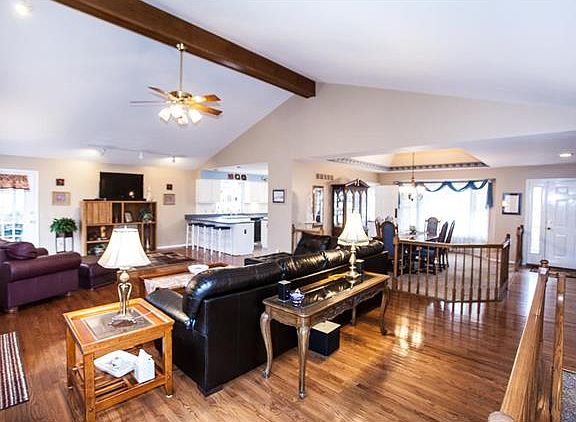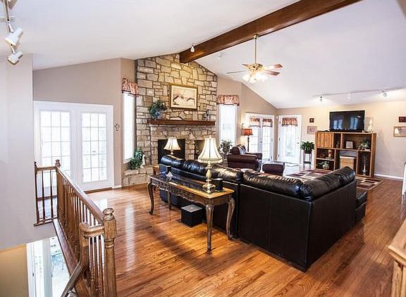 Beautiful ranch home on corner lot in Winding Trails! Dramatic great room entry into your open floor plan with vaulted ceilings and floor to ceiling stone fireplace elevation. Hardwood flooring. Open to formal dining room with bay window. French doors to composite decking with a view of the woods. Screened in porch for a relaxing day in the shade. Built-in book cases and wet bar. Patio off of kitchen perfect for grilling. Large kitchen with center island, planning desk, garden window, breakfast bar. Oversized 5 car tandem garage for the motor, hobby or garden enthusiast.