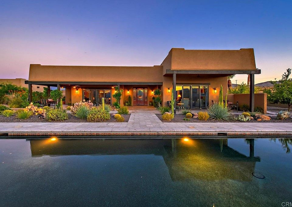 One of the finest custom homes in Rams Hill with stunning panoramic views of the Borrego Valley and surrounding mountains. Meticulously designed and maintained, this home offers the highest quality in fixtures and finishes. This property is a true gem, providing respite for the spirit and accommodating a gracious lifestyle. Main house features two bedrooms, guest house features two bedrooms, kitchenette and attached garage. Additionally, there is a 4 car detached garage that offers room for additional bedrooms, media/game room or gym. Solar & Evaporative Coolers. 2021-07-10