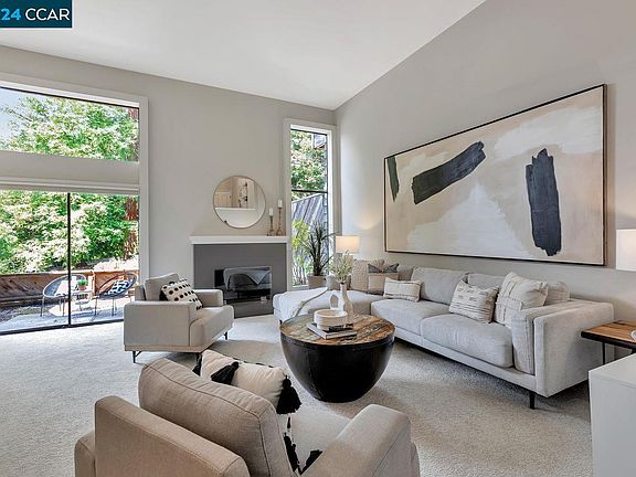 This is a rare opportunity to own a stunning 3-bedroom, 2.5-bathroom townhome with approximately 2134 sq. ft. of living space in the highly sought-after Summit Ridge. This peaceful townhome is located in a quiet court setting, overlooking an open space. When you enter the townhome, you will be greeted by a breathtaking living room with high ceilings that allow natural light to fill the space. The room boasts built-in cabinets and shelves, with providing a beautiful ambiance. If you enjoy cooking, you'll be delighted to discover the commercial kitchen. The dining area is situated off the kitchen, while the living room has a cozy fireplace and a sliding door leading to the ground patio. On the second floor, you'll find a charming library where you can relax with a book and enjoy the natural light. Furthermore, the second floor features a spacious primary suite with a bonus area that can serve as a lounge or home office space, as well as a private deck. There are also two additional bedrooms and a bathroom, making it an ideal space for you and your guest. This gorgeous townhome is located near top-rated schools, freeway access, BART, shopping, and hiking trails. The community amenities include a pool, a remodeled clubhouse, and beautifully maintained greenbelt and walking paths.