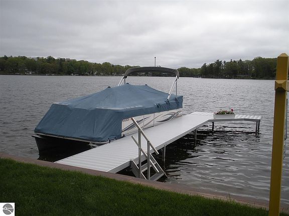 Reminiscent of days gone by, a true 'up north' cottage with knotty pine on all sports Crooked Lake located in Central Michigan. Pride of ownership with this property located on a quiet private cul de sac. Beautiful sandy frontage and gorgeous views of the lake. Recent updates include metal seawall, electricity update, roof, 4" well, door walls, aluminum dock. All the work is done, just pack your bags. *Actual age of home unknown