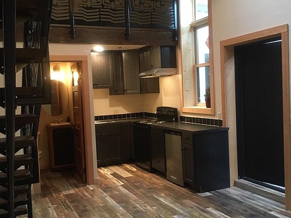 Unique SoHo style, Studio Loft with many repurposed vintage architectural building materials from 1924 store. Clawfoot bathtub, original tiles, 100 year-old fir dock planks for stair treads, custom iron work handrails, Pottery Barn chandelier. Washer and dryer, two refrigerators. Walking distance to 7 local eateries. Bit of serene class, hidden in downtown. Month to Month - hoping for long term stay. Includes Utilities water/sewer/electricity.