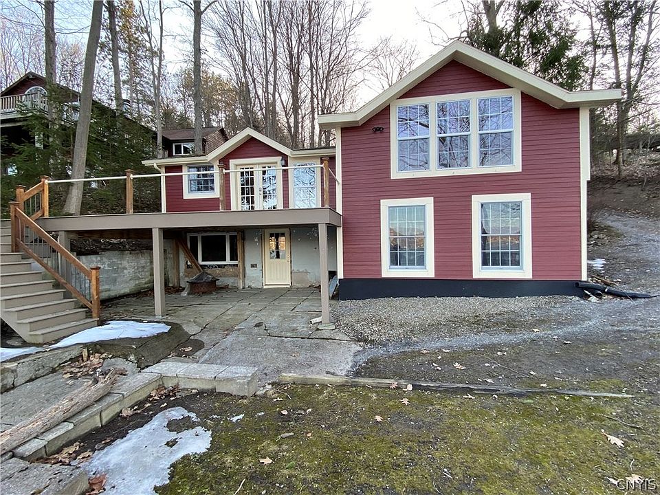 Updated Contemporary Ranch with 105 feet of pristine waterfront on Otisco Lake. Renovated eat in kitchen. 1 bedroom and finished lower level can sleep several more people. Plumbing has been started for radiant in floor heating to make this property usable for the spring and fall months. Deck with beautiful views of the lake. OCWA owns the water frontage up to the high water Mark.