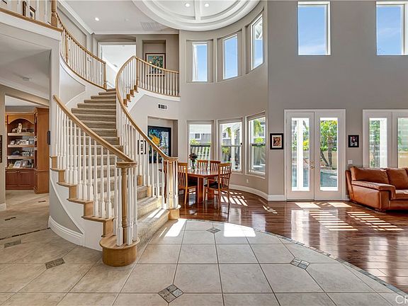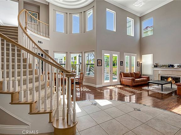 This exquisite Shea Home is ideally located in a secluded cul-de-sac within the esteemed guard-gated community of The Peninsula, offering a tranquil setting with a luxurious pool and spa. Boasting over 3300 square feet of living space, this residence features 4 bedrooms, each with its own en-suite bathroom, including a main floor bedroom, along with a downstairs office complete with custom built-ins. The potential to expand living space by over 300 square feet presents an opportunity for an additional bedroom, bonus room, or game room on the upper level. Upon entry through the grand double doors, guests are greeted by the impressive two-story ceilings and a gracefully curved staircase leading to the luminous living room with a fireplace and a formal dining area overlooking the pool. The gourmet kitchen, adorned with granite countertops, a sunny breakfast nook, a center island, a breakfast bar, and stainless steel appliances, seamlessly connects to the family room featuring built-in shelving and a fireplace. The Primary Suite offers a serene retreat with a cozy fireplace, a spacious walk-in closet, a spa tub, and a separate shower. The attached 3-car garage includes a seperate third car garage, currently repurposed as a music room, providing versatility for future use. The property exhibits exquisite curb appeal, complemented by professionally landscaped front and rear yards, highlighted by a captivating pool and spa with color-changing lights, solar panels on the roof for pool heating, and a built-in BBQ center. Conveniently located within walking distance to the beach, park, and the distinguished SeaCliff Elementary School, this residence also benefits from its proximity to a recent record-breaking sale within the neighborhood at $6,000,000!