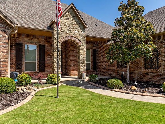 A true masterpiece offering stunning luxury and modern convenience on the second-largest green belt lot in the neighborhood with easy highway access. Step into an open layout with 16 foot high ceilings, bullnose corners, fresh paint, new carpet, granite window sills, and 3" plantation wood shutters throughout. The enormous gourmet kitchen dazzles with a large center island, open to the family room, and includes breakfast bar, recently updated hardware, under-counter LED lighting, a built-in oven, gas cooktop, pantry, and a built-in central vacuum throughout. Relax in the oversized primary suite featuring a large walk-in shower, jacuzzi jetted tub, and an expansive master closet with storage galore. Outdoors, indulge in the 18x36 quartz plaster heated pool with a custom waterfall, sundeck, removable pool safety fence and cool-coated patio, complemented by a backyard kitchen with ample storage, a hot tub with stereo/speaker system, and a 7 zone sprinkler system with new yard gates on both sides. Safety and comfort are paramount with an in-home upright walk-in storm shelter with built in TV, a full home surveillance system with monitor, a 20 KW whole-house Generac gas generator with auto-start, dual-zoned thermostat A/C and heating, and two 50-gallon water heaters. The grand custom stone fireplace with a granite hearth, designer-grade lighting, new ceiling fans, and an ice maker in the kitchen elevate the elegance. The oversized 3.5-car garage features a built-in workbench and a large work area with a brand new epoxy flooring! Additional highlights include three bedrooms plus a study, a walk-in coat closet, a Pella front storm door, and a pin stake survey will convey with the property. This extraordinary home blends sophistication, functionality, and many recent upgrades. Schedule your showing today to experience this dream home!