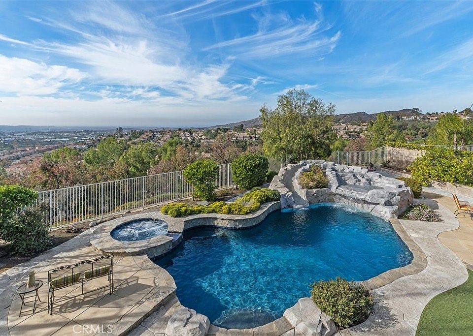 Nestled in the highly sought-after community of Portola Hills in Lake Forest, this exceptional home offers the perfect combination of luxurious living and breathtaking views. Spanning nearly 4,000 square feet, this residence boasts 6 spacious bedrooms, 4 bathrooms, a dedicated office, and an expansive upstairs bonus room or flex space—ideal for a game room, home theater, or additional living area. Situated on an impressive 9,000+ square foot lot, the outdoor spaces are nothing short of spectacular. Enjoy forever views stretching to the ocean, enhanced by twinkling city lights and awe-inspiring sunsets. The backyard is a private oasis, featuring a sparkling saltwater pool and spa with a rock slide and waterfall for endless enjoyment. The covered outdoor BBQ station complete with refrigerator, cooler and tons of seating creates the perfect setting for entertaining. The observation balcony provides sweeping panoramic views that are simply unforgetable and ever changing with each unique sunset. Inside, the home showcases a harmonious blend of comfort and sophistication, with generously-sized rooms and a seamless layout designed for modern living. The kitchen and living areas flow effortlessly to the outdoors, making it ideal for hosting gatherings or simply enjoying everyday life.