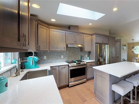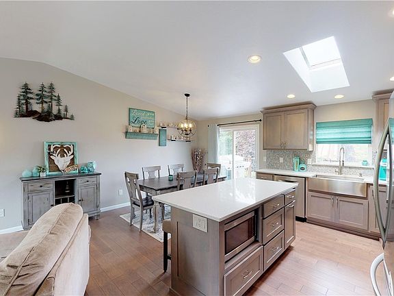 Gorgeous kitchen w/stainless appliances,custom cabinets,quartz counter,farm sink,glass tile back splash. Stackstone fireplace anchors this open concept living space.Master w/walkin&standard closets & updated bath.Lower level features media rm(easily converted to 2 bdrms),3/4 bath & laundry,lg bonus room.Tons of storage.Breathtaking view from upper deck .Lower level w/ covered patio stamped concrete, shed & fenced.Must see to believe.