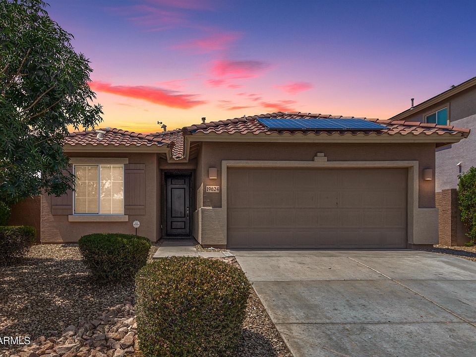 Ideal sized home nestled on a large lot with mature shade trees and lush landscaping is your ticket to escaping the desert. Inside the cool tile reflects ample natural light in an open living area overlooked by a kitchen with upgrades like; granite counters, tile backsplash, upgraded appliances, ample storage, breakfast bar and more. The master bedroom is split from the other two bedrooms and upgraded bathroom for privacy making this home ideal for families, roommates, or multi-generational living. The spacious master suite enjoys dual sinks, upgraded step in shower, and covered patio access. Out back enjoy a larger than average backyard retreat with shade and low maintenance, premium turf. Move-in ready!
