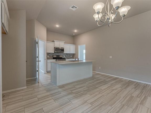 VERY CLEAN, READY TO MOVE IN! Edmond Deer Creek School! Better than new in pristine condition with all the extras! This open floor plan with streamlined classic white kitchen provides stainless appliances, gas cooktop, center island with quartz counters, and pantry area. Split floor plan. Residents of Castleberry enjoy community amenities including a pool, playground, fitness center and clubhouse. Convenient Location, Easy access to I-74
