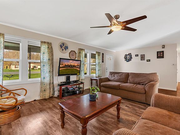 Here is your chance to own a cute, move in ready home at a great price! This house features three bedrooms, one and a half baths, and a large living room that flows nicely to the eat-in kitchen with a sliding glass door that opens to the large backyard. The neutral colors throughout, white kitchen, and abundance of natural light makes this home airy and bright, and the open layout is great for entertaining and gathering. The full bathroom has been completely updated and features a large soaking tub, ceramic tile, and a twin sink vanity. Outside features include a great circular concrete driveway that offers plenty of parking and a convenient entrance and exit from the home, low maintenance vinyl siding, an attached garage, large wood deck off the rear of the home, and the yard is fully fenced with a storage shed! Schedule your showing today to see how this house can work for you!
