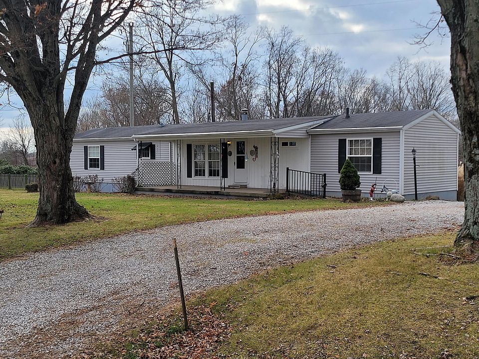 Beautiful 1.14 acres with an attractive 2BR Mobile Home that has been renovated and well maintained. Lots of parking and space. The covered front and back porch make this home wonderful for guests or an owner looking for space. In addition, the 2 car garage, shed, and outbuilding continue to provide excellent space outside this mobile home for you to set up your residence. Excellent parking provided with gravel drive leading to a concrete pad. Location! Location! Location! Open floor plan with so many upgrades in this home. Insulated windows have been installed. Mature trees are scattered throughout the property and the rear is back against woods.
