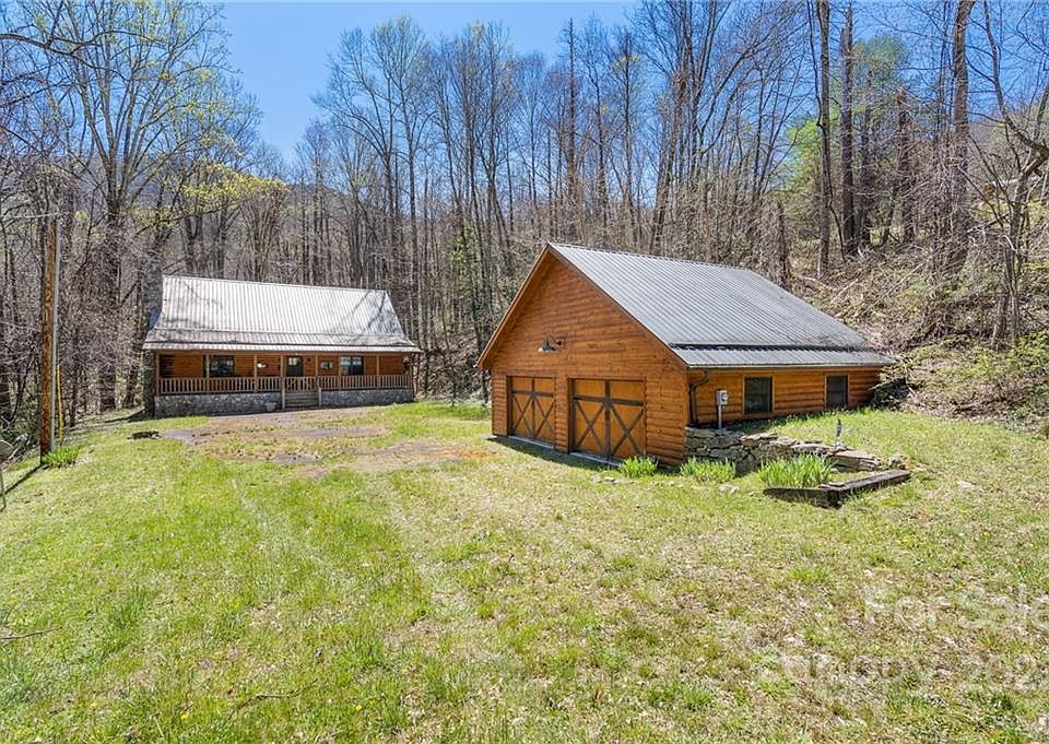 MULTIPLE OFFERS RECIEVED! Calling for highest and best by Friday, May 6th at 5PM! You don't want to miss this stunning 3 bedroom, 2 bathroom mountainside log cabin! Owned by the same family since it was constructed, this unique home faces out onto newly established conservation land. The house features an open concept living space with a beautiful wood-burning fireplace in the great room, a large kitchen with plenty of storage, and an open 2-bedroom loft above. The primary bathroom features a double vanity, a tiled walk-in shower, and washer/dryer hookups. The large deck on the rear of the home is partially screened in and the front porch is covered. A large 2-car detached garage offers abundant storage in the space above and plenty of workshop space below. This stunning property is only 15 minutes to downtown Waynesville and downtown Canton. **Please No Drive-Bys**