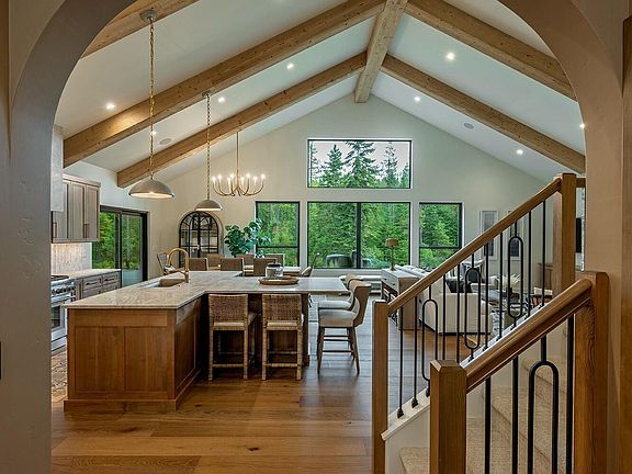 READY TO MOVE IN! Brand new award-winning luxury home on 4.76 acres on a paved road in 'The Glades' a neighborhood of LUXURY homes located in Rathdrum ID. The Quaking Aspen blends rustic Old World timber, arches and stone with modern finishes, clean lines, and abundant natural light. Built by an award-winning builder, this 3 bed / 3.5 bath, 3,132 sq ft home features main-level living with a 4th bedroom and full bath upstairs. Highlights include timber accents, masonry exterior, oversized wood & glass front door, whole-house audio, large kitchen with honed natural quartzite countertops, Thermador appliances, walk-in pantry, hardwood floors, stone fireplace, spa-like owner's suite, solid core doors, spacious laundry/mudroom, huge covered patio w/ bbq hookup, custom firepit, paved driveway, extensive professional landscaping with basalt column water feature. Treed parcel, close in, paved roads, shops/barns/livestock OK. THIS HOME IS TURNKEY LUXURY!
