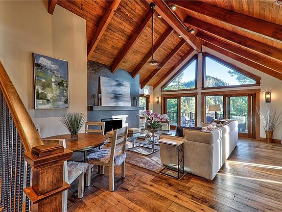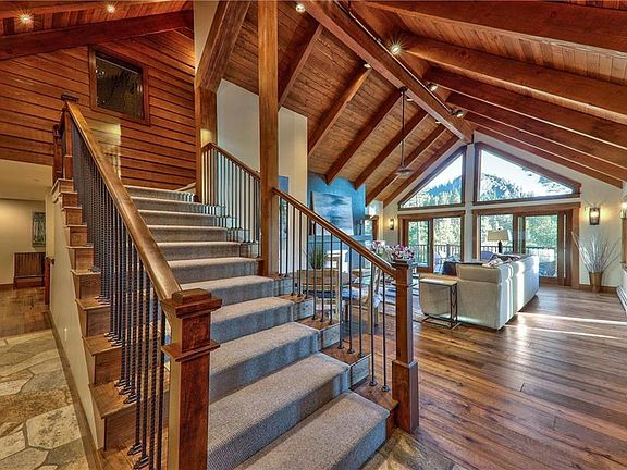 Enjoy Luxury Lake Tahoe living in the private, gated, lakefront community of Historic Glenbrook. This truly turn-key, light filled mountain contemporary style home was meticulously renovated in 2018. The great room, dining and kitchen areas all feature high beamed cathedral ceilings complimented by floor to ceiling window views of the iconic Shakespeare Rock. The main living areas open to a wide elevated deck overlooking the Sierras with filtered lake views, embracing the distinct indoor-outdoor Tahoe living experience. Transitional finishes include wood, stone and porcelain. This "like new" custom home includes a main floor master suite, 3 en-suite guest rooms and a spacious and special "attic bunk room" with bath, a separate family room, office and mudroom. The homes new gourmet kitchen, flexible floor plan, generous outdoor spaces, and lake-beach access create the ideal setting for a lifestyle easily combining family, friends, guests and entertaining.