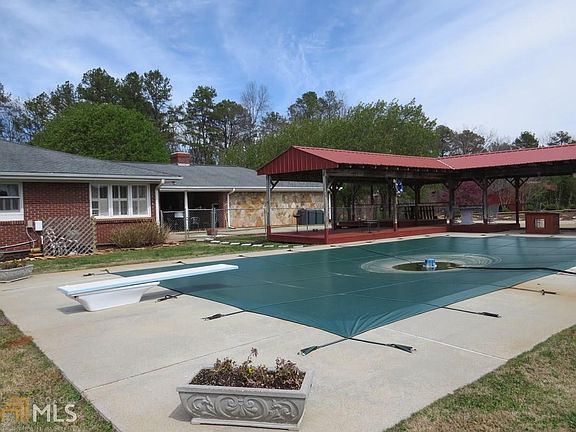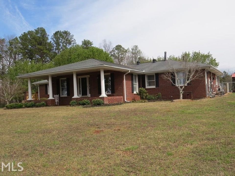 Wow ~ beautiful brick home on 7+ acres with a salt water inground pool. A covered front porch with a peaceful view and step into a wide foyer with DR/LR on each side. The great room has rich wood flrs and a stone platform for a wood heater (plumbed & vented for gas logs too). The sunny kitchen (5 burner gas range) is open to the breakfast bar & eating area. Owners suite...walk in closet, private exterior door to porch, br double vanity, walkin shower, Jacuzzi tub ~ Outside is just paradise...the covered breezeway/patio has a stone outdoor fp and makes a great entertaining space. 3 bay workshop is quietly tucked away on a paved drive lined with trees. Pole Barn. Located close to Lake Hartwell/Spring Branch and Currahee Club.