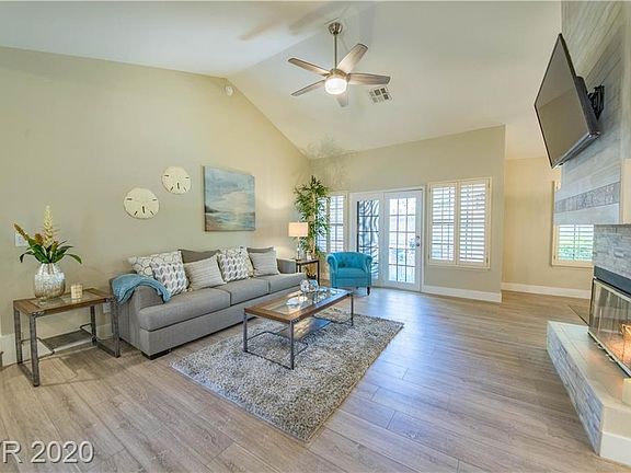 No expenses spared in this elegantly remodeled, spacious home. The Master Bath is truly breathtaking with a custom tiled, double door, glass shower, dual vanities, plus make up vanity. Plenty of added counter space & cabinets in the kitchen w/new stainless appliances & slide in gas stove, tile backsplash, quartz countertops, cabinet hardware & XL sink. The luxurious fireplace is the focal point of the Living Room w/tile surround, wood accent slat wall & wall mounted TV. Exceptional quality, 72-hr water resistant wood laminate floors throughout, wood shutters, custom mirrors & ceiling fans with remotes. Enjoy a morning cup of coffee or afternoon glass of wine in your patio and two community pools to cool off from these hot summer days. The grounds are meticulously maintained and gated for added security. Don't forget to check out the oversized 2-car garage. THIS is the one you've been waiting for!