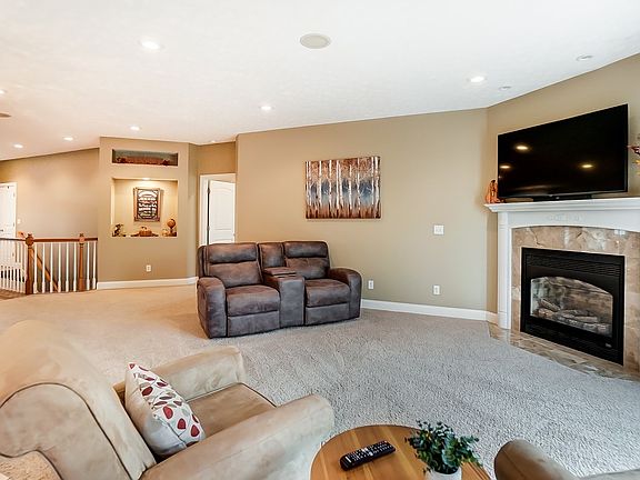 Don't miss out on this Elegant 0pen concept 2004 Parade Home located close to schools. This well maintained home featuring 4 bedrooms, 3 full baths with over 4,400 finished square feet. Spacious eat in kitchen with custom cabinets, tiled floors and a breakfast bar. Kitchen has an open concept to the living room which has a cozy gas fireplace. Master bath has a separate shower, whirlpool tub, twin sinks and his & hers walk-in closets. Main level also features a dining room, home office and laundry room with plenty of cabinets. Lower level features a living room with an 8 ft. Projection Screen, gas fireplace, wet bar, rec room, workout room, 2 bedrooms and a bath room. Step outside to a Multi-tiered no maintenance deck connecting with 8 person hot tub. 3 Car Garage w/epoxy floors and attic space above. Other features include Surround Sound System, Irrigation and Central Vacuum System. This neighborhood has sidewalks. This home has it all. Schedule your tour today.