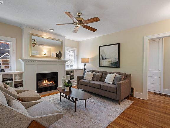 You might say this English Tudor in one of Portland's most vibrant neighborhoods checks all the boxes. Located in historic Colonial Heights, right between Hawthorne and Division, the arched entry and mature landscaping provide storybook charm. Inside, enjoy a bright living room with fireplace surrounded by beautiful built-ins. All freshly painted. Gorgeous hardwoods throughout the main living spaces. Charming and spacious nook off the kitchen has beautiful built-in walnut bench with storage, plus more intricate original shelving, and space to host memorable dinners. Nice-sized kitchen featuring newer black hexagon tiled floor, and a door out to the private backyard. Two bedrooms on the main level and a bathroom with wainscoting, penny tile, original tub, and pedestal sink. Entire upper level is a decadent primary suite complete with vaulted ceilings, skylights, gas fireplace, balcony, walk-in closet, and large bathroom. And don't forget the finished basement offering a family room with stylish wallpaper, another bedroom, bathroom, laundry, and storage area. Immaculate backyard and patio with just enough lawn and bountiful raised beds to be inviting, but still low-maintenance. Oversized detached two-car garage with extra storage and space for gear, hobbies, and more. Amazing proximity to shops, dining, and fun in Southeast Portland! [Home Energy Score = 5. HES Report at https://rpt.greenbuildingregistry.com/hes/OR10227858]