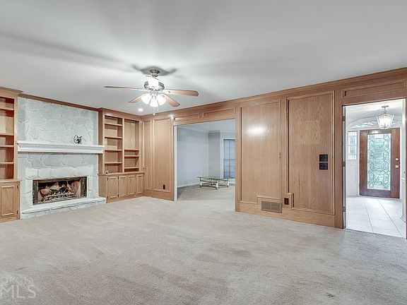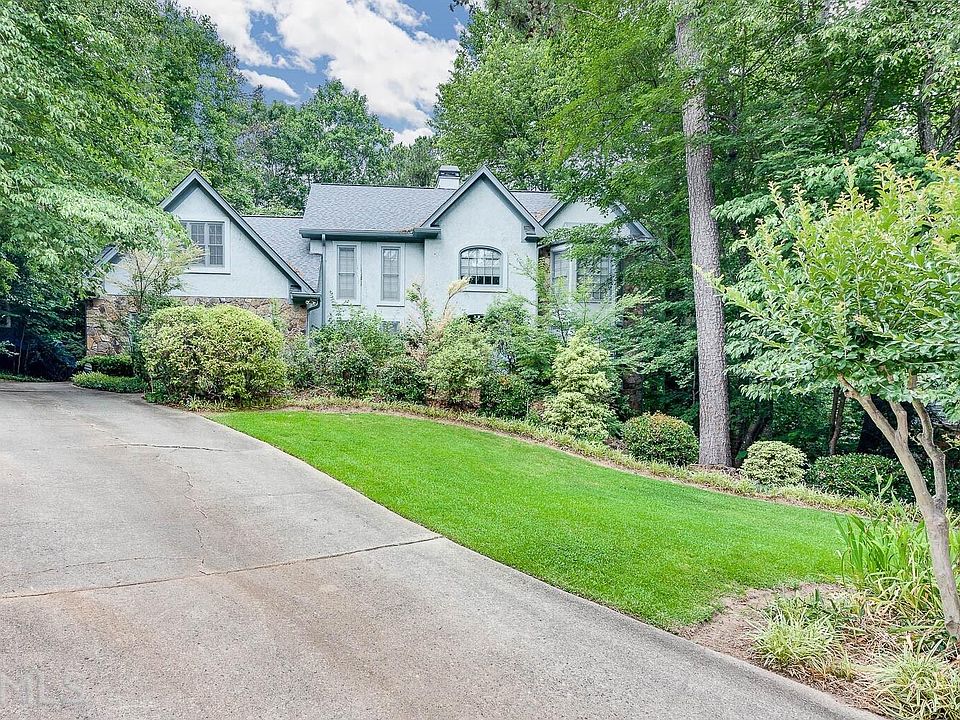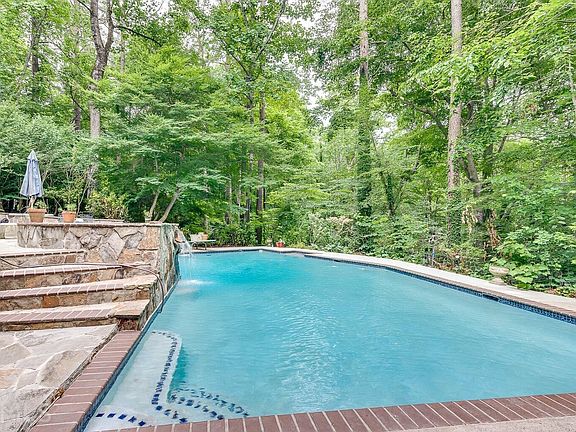 Spacious traditional beauty perched hilltop in the cul-de-sac with backyard oasis including x-large in-ground pool! Updated kitchen with gray-stained cabinets, granite countertops, marble arabesque tile backsplash, island with breakfast bar, bayed breakfast area, double oven and on-trend tile flooring. Welcoming foyer with upgraded tile leads into formal living room with beautiful bayed window. Fireside great room with custom built-in bookcases and stately paneling. Formal dining room with crown and chair rail detail. Upstairs features fireside master suite with trey ceiling, sitting area, two closets, and en suite with dual vanity, jetted tub, tile floor, separate shower, vaulted ceiling and skylight. Two additional guest bedrooms are both generous in size. Bonus sized fourth bedroom boasts two additional insulated storage closets and back staircase leading to kitchen. Full bath with dual vanity and oversized tile shower round out upstairs. Sunroom with tile floor and exposed pine ceiling leads onto impressive deck and backyard paradise ideal for entertaining with tiered patios, giant pool with brick coping and flagstone surround, and garden area.