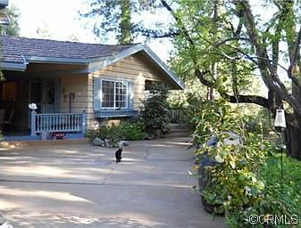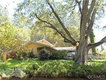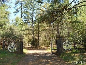 COUNTRY LIVING AT ITS BEST!!! Enter through security gate, follow winding lane to this charming updated home. Living room has rock fireplace open to dining room and corner den. Overhead stained glass fixture. One bedroom on main floor with 3 closets. Go up the spiral stairs to the spacious master bedroom that has a fireplace, glass door to deck, built in bookcase, large closet and cheery bath. Kitchen has been updated boasting a crushed quartz counters. LOTS of storage throughout home. One bedroom, one bath guest cottage for privacy. Detached office for home business or hobbies. Nice rose garden and a dozen fruit tress. All this on wooded 6.41 acres. Adjacent parcel of 4.51 acres is also available. Could be horse property or just private country living! Flagpole is the original from the old school.