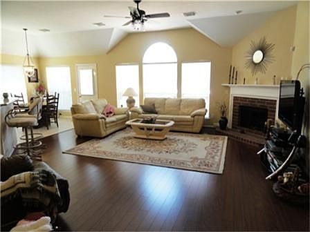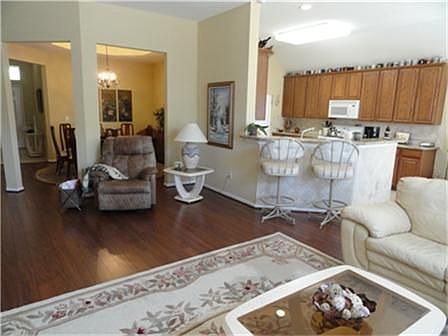 Beautiful one story*Move-in ready*Open floor plan*High ceilings*Many upgrades:Granite counter tops,tile back splash,Kit.Faucet,Laminate wood floors-Dining,Den,& 2 bedrms*Tile entry,kitchen & both baths*Updated light fixtures*2in blinds*Nicely landscaped yard*Deck w/hot tub,fountain & more*Large relaxing master has berber carpet over looks pretty back yd fountain*Executive bath w/sep tub & shower*Guest bath has separate double sink vanity area*Oversized utility*Brick exterior*Roof'09*Paint'09