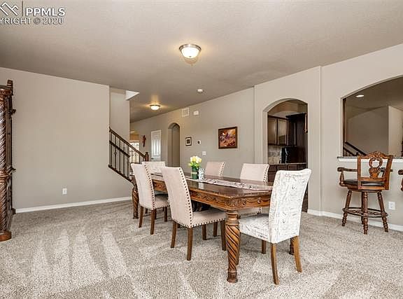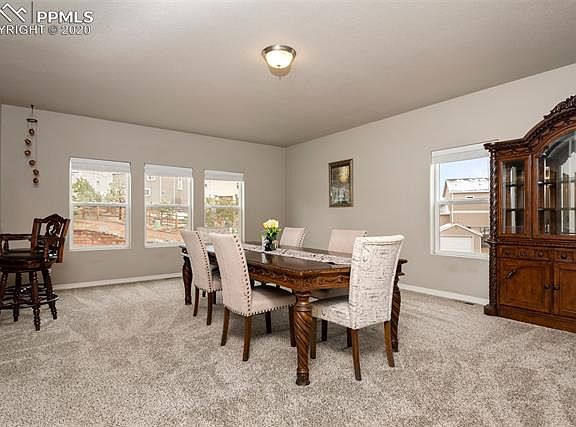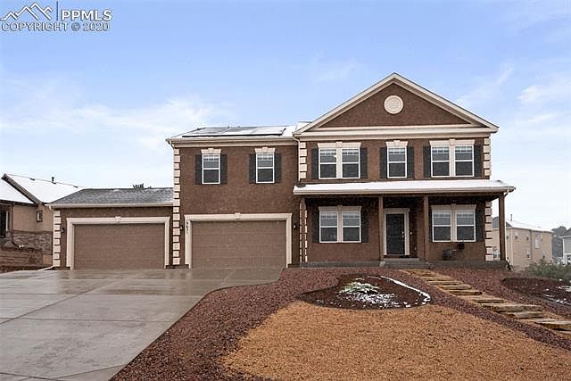 Don't miss this beautiful 2 story stucco, move-in ready home in the desired Misty Acres in one of Colorado's highest achieving school districts, with easy access to I-25 or Downtown Monument. Come home to this low maintenance artistically designed xeriscaped yard with nice areas of artificial turf and raised garden beds all on a drip system. Enter into the huge open concept 2 story home with a large spacious living room and an equally large formal dining room just off a huge gourmet eat-in kitchen with arched entry. The kitchen has lots of cabinets, granite countertops with tile backsplash, massive pantry with tons of storage, and fantastic stainless steel appliances. You will love having family gatherings and entertaining friends in the beautiful dining room and then step outside onto the 2 patios in the backyard. There are 3 large family rooms, one on each level of the home. You can retreat to your master suite either on the main level with a 5 piece bath or the huge one on the second floor with soaking tub, oversized shower, and double vanity. There is also another master suite in the basement level. There are a total of 4 bedrooms and 3 baths on the second floor and 2 bedrooms and 2 baths in the basement level which also has a large rec room. Do not miss the stunning mountain views from the spacious living room or while working in your office. With the roof mounted solar panels you will enjoy seeing those really low electric utility bills. This home has it all, come and see today!