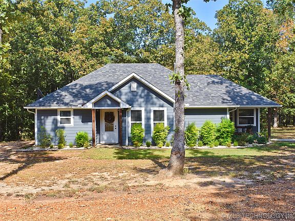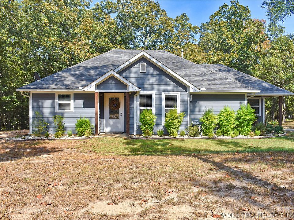 If you're considering retirement or downsizing, this could be your perfect match. This 2018 two-bedroom, one-and-a-half-bath home boasts granite countertops, an open floor plan, and laminate flooring throughout, except for the carpeted bedrooms. Don't underestimate the storage space – there's even a spacious pantry conveniently located off the kitchen. The living area offers coziness with a gas-burning log fireplace. You can relish the outdoors on the covered patio or by the fire pit, experiencing country life. Enjoy the view of a small pond, surrounded by mature trees and wildlife. Additionally, there's a spacious 30x40 shop with two 12x40 overhangs for equipment, plus a two-car carport. For guests, there's a 16x36 cabin, although it requires interior finishing. It sounds like a charming and versatile property.