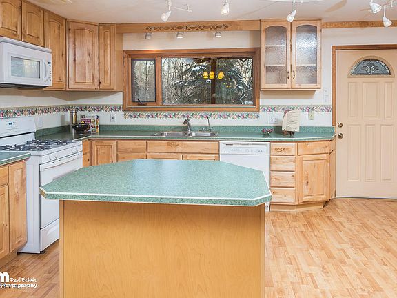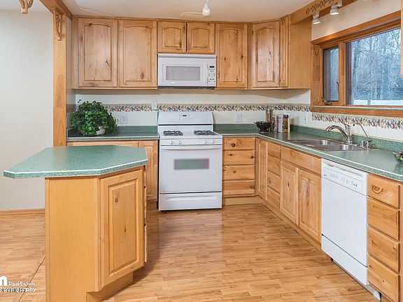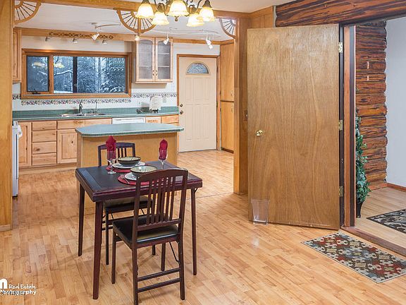 Darling Alaskana Log Home on Spacious & Private Lot! Updated Kitchen Overlooking Yard Boasts Hickory Cabs & Newer Flooring, Breakfast Bar w/Eating Area Open to Log Chinked LR. New Carpet Throughout. Tasteful Lighting. Updated Bathrooms w/Granite Counters and Newer Fixtures. Cozy Den w/Gas Stove. Huge Lndry Rm w/Storage Shelves. Mud Room w/Utility Sink. Arctic Entry. Lg Detached Garage. Greenhouse New Water Heater. Electric Air Cleaner. Water Filters. Gorgeous Landscaped Yard. Extensive Covered Decking. 2 Sheds.