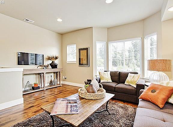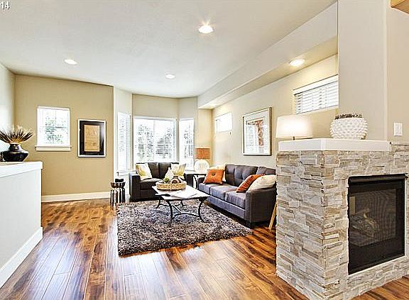 New Construction Townhome in GATED Community near Nike, Intel & Streets of Tanasbourne. Luxury finishes w/ slab granite kitchen, engineered walnut wood floors, custom alder cabinets and gas fireplace with stone surround. Outdoor deck with storage closet. Community park & playground. Window blinds, stainless refrigerator & AC included! Photos of model home with same layout and color selections. Furnished model home open Fri-Tue Noon-5pm.