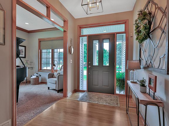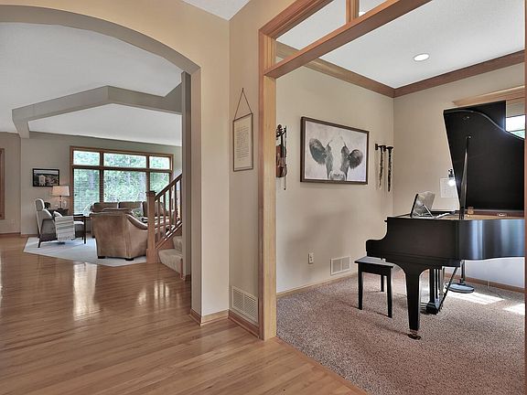 Incredible 2 story in desirable Elk River neighborhood, former Hanson Homes model. 4 beds, 4 baths,Open concept with updated kitchen-stainless appliances, granite, & bar seating. Dining area with access to the deck for outdoor dining. Living room with fireplace! Main level study/front room for at-home office or currently the music room. 3 bedrooms up to include large Primary suite with updated full bath.Lower level has plenty of space with a study/bedroom and 3/4 bath on one end and family room & billiard room on the other. LL walkout patio door leads to backyard oasis, featuring patio and large paver firepit area. Additional features include hardwood floors, in-ground sprinklers&garage storage.Neighborhood has walking trails and a playground, close to ER Golf Club, shopping and highway access. What's NEW? Siding'24, Roof'23, gutters'23, Kitchen update'24, primary bath update'24, furnace'18, AC'23, water htr'22, softener'22, landscape'23,carpet on main'23, and all appliances updated!
