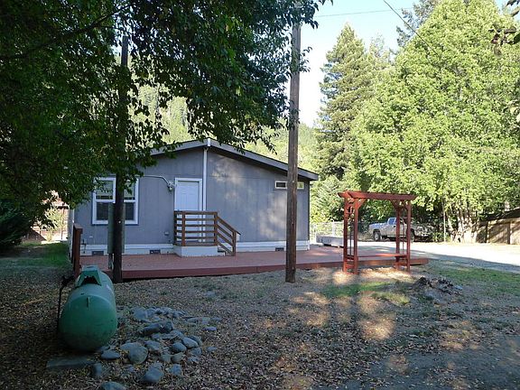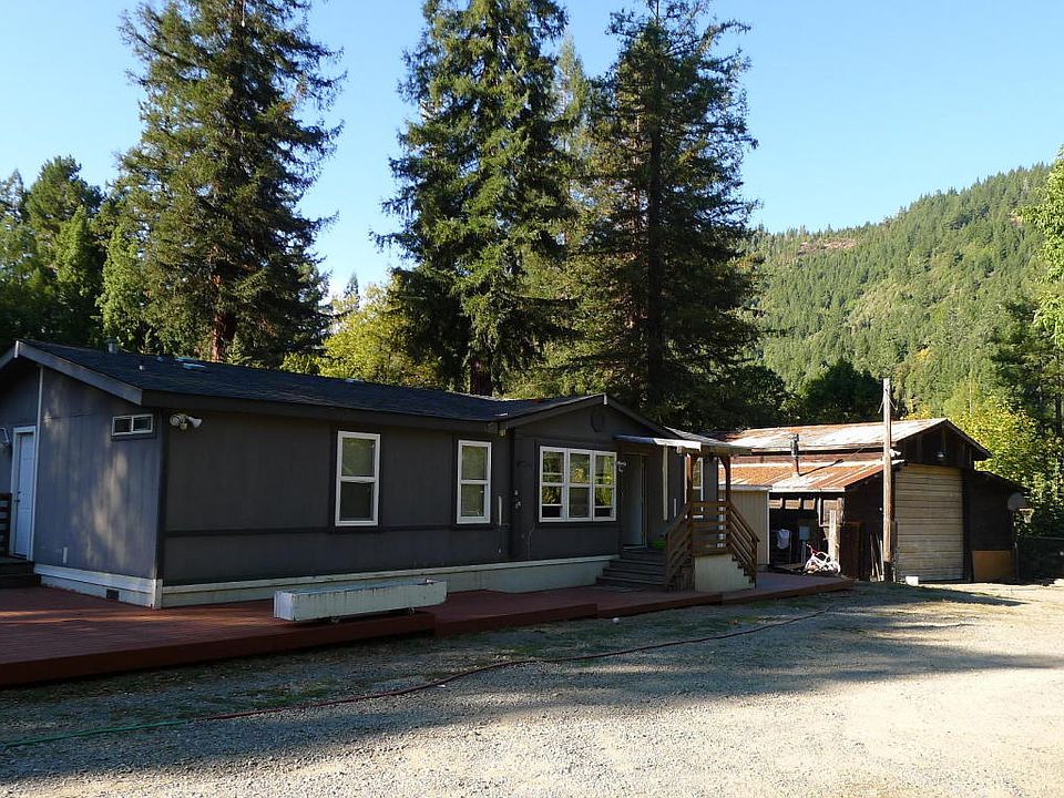 RIVERFRONT property behind a private fence...one of the few riverfront properties with a true swimming hole, has partially developed sandy beach and large rocks jutting out into river, sandy beach slopes into deep swimming hole that rivals Swimmers Delight county park just down the road, fishing or swimming...owners choice; upper flat completely fenced has very nice modular home with vaulted ceilings surrounded by large deck, large barn with power perfect for projects or car/truck repair shop, mature plantings include trees and grape arbors, middle flat has driveway access, 220 power source, room for large gardens or develop into a beautiful landscape...beautiful views of the Van Duzen river and surrounding hills. Zoned Improved Rural Residential