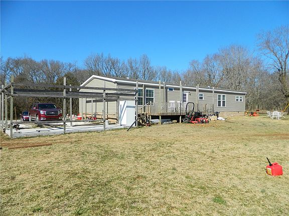 Great 2018 modular home on 1 1/2 acres on paved county road. Home has slab and partial beginnings of carport/garage to be constructed. Has a great raised concrete porch to sip your morning coffee on. Creek is across the road and you can hear the frogs croaking!! Luxury Vinyl throughout dining/kitchen and living areas. 4 bedrooms with 3 full bathrooms (master bedroom closet is 14 x 5!! ) There is plenty of room out back to build a shop building. Property is not in 100 year flood plain. Come see today!!