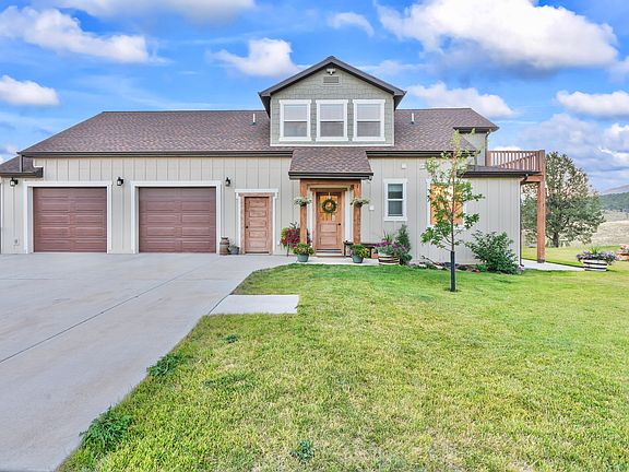 You will love this custom built home on 1 acre. Nestled up in the pines over looking the valley. This 6430 sqft, 6 bed, 5 bath home features a large entry with formal living. Large great room with wood burning fireplace. Beautiful custom kitchen with maple 'shrock' cabinets. Copper farm sink, Custom pull out drawers, quartz counters & maple wood block Island. Lrg Master suite with vaulted blue pine wood ceiling. Beautiful Master bath with large sep tub/shower, His & her sink counter area's. His & her walk in closets. Up stairs has a large sewing, craft area, workout room w/sauna and walk out deck. Basement is 98% finished needing only trim and a few finish's. Huge storage room, Full kitchen with room for a 2nd family room. Large room w/o a closet could be an office or another bedroom. 975 sqft workshop under the garage. Home has been built with ICF foam foundation, 2X8 thick exterior walls. HVAC system is zoned per level. Home is wired for a generator backup system. On the property is a Geo thermal 8ft deep 14X45 green house. You can grow a garden year round. Also a chicken coop with fencing. North side of property borders HOA common ground & BLM land. There is also an additional 1.00 acre lot to the south of the home for sale. Home shows beautifully clean & is well taken care of.