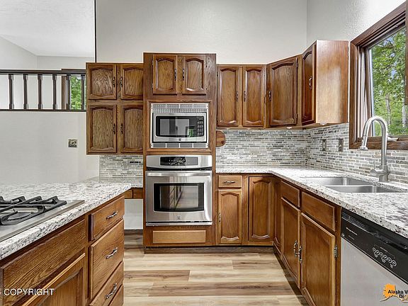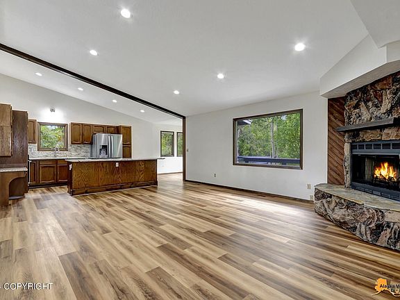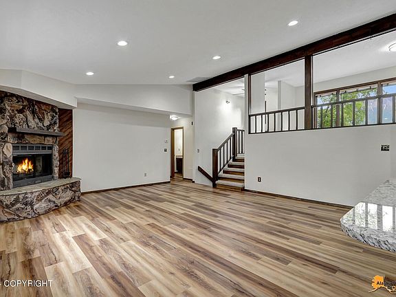 Newly updated multi-level home on over a 4/5ths acre nicely treed lot offers lots of room for Alaskan toys, large shed & mountain views from the front & rear. Brand new exterior & interior paint & new LVP floors in the Great Room plus brand new plush carpets in bedrooms & loft invite you to move right in. Remodeled kitchen w/granite counters & stainless appliances was just updated a few yearsyears ago in 2018. The Great Room offers a vaulted ceiling & rock-faced corner fireplace. Overlooking the Great Room is a spacious loft/office/playroom that opens to a big deck with mountain views that enjoys fabulous sunshine. Downstairs a recreation room features a built-in bar with tiled countertops. Get your game on while enjoying the added bonus of the pool table that remains with the home. Sliding doors open to the great outdoors. The septic system was newly installed just 3 years ago and the updated COSA is in hand. Brand new front porch just installed in June 2024. Just moments from shopping, great schools, Eagle River town center and the trail system, come home to the best of Alaskan living, come home to 19639 2nd Street.
