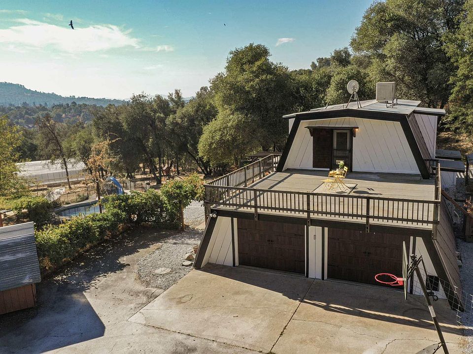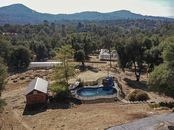 Country Living Minutes from Town!! Enjoy your own foothills retreat on 3.25 acres at the end of a secluded road. Relax in your vaulted ceiling great room, gazing out at the surrounding mountains and over your property. A kitchen, two bedrooms and a newly remodeled bathroom complete the first floor. A new laundry room is right out the back door in the two-car garage. Upstairs a loft overlooking the great room but is private enough for an office, craft area or playroom. Off the loft is the private master suite with a walk-in closet and a rooftop deck to enjoy beautiful sunsets. Step off the deck to your multi-purpose property. There is a pool with slide and security fencing as well as a children's play area complete with play structure. Two greenhouses (15,000 square feet and 600 square feet) with raised beds and irrigation are ready for you to plant your farm or flower garden. And still there is open space for farm animals if you desire. And the entire property is fenced and cross-fenced. There are several outbuildings with a total of 572 square feet of storage as well as a 236 square foot casita with bathroom and possible additional income around $500 a month. There is well water for irrigation and potential for house usage. A 5,000-gallon water storage tank ensures you adequate water for your irrigation needs. When you do want to leave your quiet retreat, you are 8 minutes from Safeway, 40 minutes from Dodge Ridge Ski Resort and 30 minutes to Pinecrest Lake.