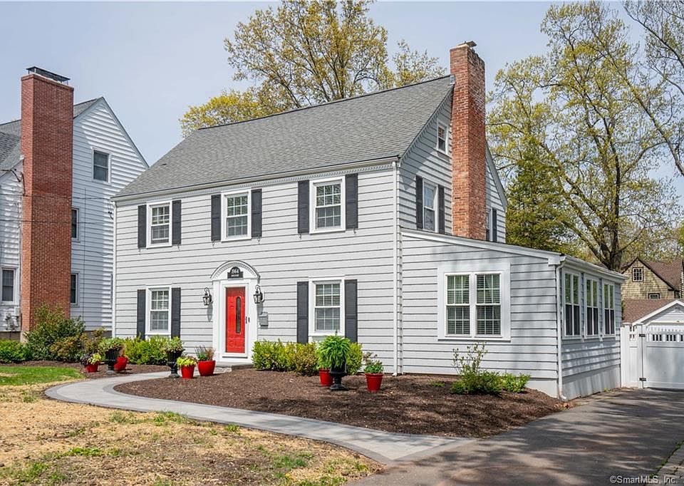 Welcome to this charming colonial conveniently located steps from West Hartford Center & Blue back square. This property has been updated inside & out and is ready for the next owner. The first floor of this home has been remodeled, the living area is an open concept which is comfortable for daily life and includes a beautiful stone fireplace with a gas insert and plenty of natural light. Off the front entry is a large formal dining room with hutch that leads to a completely updated kitchen with new shaker cabinets, SS appliances, granite counter tops, farmers sink and backsplash. Half bathroom is located just steps from the kitchen. Off the rear of the home is a spacious mudroom that leads directly out to the back yard. The back yard is an entertainers dream and includes a brand new side & rear patio complete with built-in stone fire place, fully fenced in yard and brand new garage. The second floor of this home includes 4 spacious bedrooms and two full bathrooms...one of which is a large master en-suite complete with updated full bathroom and balcony overlooking gorgeous back yard. Additional highlights: updated au pair suite complete with kitchenette, full bathroom & separate entrance, new front walk, gas heat, central air, vinyl replacement windows, walk up attic, wood floors throughout and so much more This house is a must see!!
