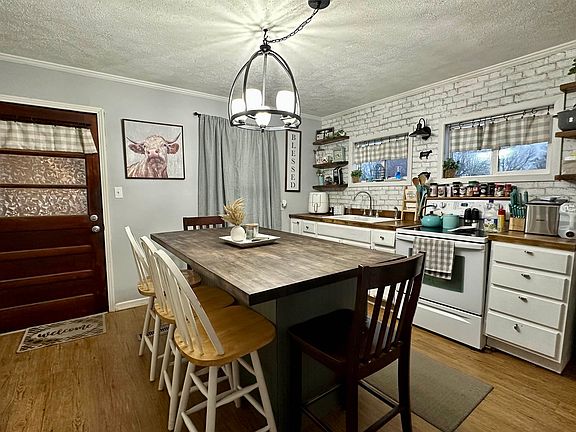 Escape to country charm in this cozy 2-bedroom, 1-bathroom home sitting serenely on 1.71 acres of land! A spacious 24x40 shop perfect for hobbies, storage, or workspace accompanies the property, along with a smaller separate storage building for extra organization. The large kitchen island doubles as a dining table – perfect for casual meals and warmth. Overall, a peaceful country retreat with plenty of space for outdoor enjoyment and indoor comfort – perfect for calling home!