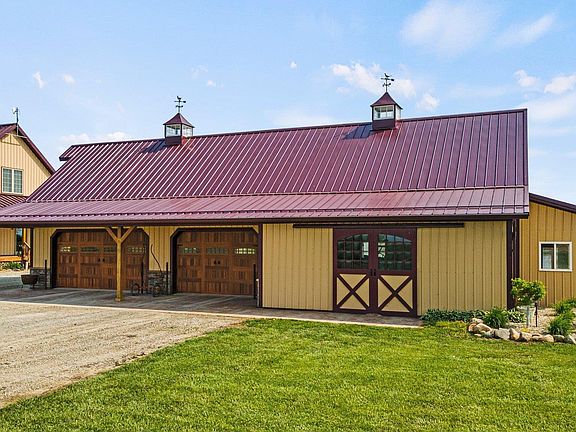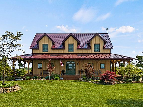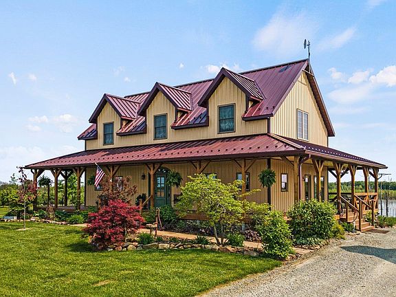 Contingent Offer, Accepting Back-up Offers 10+/- Acres with a gorgeous 3 bedroom home with wrap-around porch & walk-out basement! Upon arrival, you'll be captivated by the grandeur of the property's facade, adorned with manicured landscaping and an impressive wrap-around porch welcoming you inside. Be greeted inside by an abundance of natural light that bathes the interior, accentuating the fine craftsmanship and premium finishes throughout including hickory floors & Pella windows. Custom kitchen is complete with hickory cabinets, leathered granite countertops, double ovens & a center island. Kitchen opens to the dining room with amazing lake views! Grand 2-story living room has picturesque lake views as well. The main level Master Suite features a spacious bedroom with walk-in closet and laundry. There are 2 additional spacious bedrooms upstairs with walk-in closets as well as a full bath with jetted tub. This immaculate home offers a full finished basement ready for entertaining with kitchenette, family room, bonus room, pool table room as well as a mechanical & storage room. The 40x64 Pole Barn with loft has space for your vehicles and workshop. 8x16 chicken coop is the perfect home for your chickens. 5+/- Acres of CRP ground for extra income! This is shown as tract 1&2 on the tract map in documents. Don't miss this opportunity to own a picture perfect home overlooking the country side all on 10+/- acres!