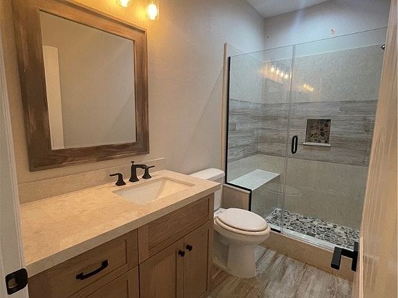 Experience the luxurious lifestyle of this gorgeous, semi-custom NEW build with NO HOA! Boasting the largest RV garage in town at 24x70 ft. with a 14ft rollup door, this single story home is Energy Star 3.1-5 star+ rated with tankless gas water heater and 1974 sqft. Step inside to find three spacious bedrooms each featuring custom designed tile showers for an unbelievable experience. The kitchen features Cambria counter tops, tile backsplash, hammered copper farm sink and vent hood, island with custom X panel doors, breakfast bar with tile kick plate, pendants and recessed lights - truly a chef's dream come true! Entry is flanked by two stunning stained barn doors for added elegance. Don't miss out on your chance to own this one of kind property today!