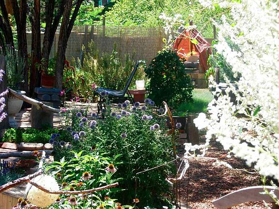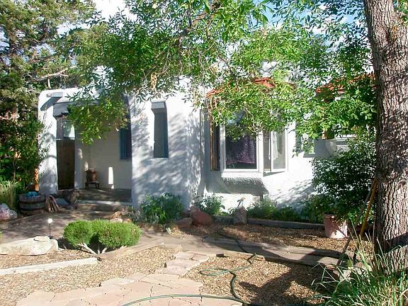 Lovely and inviting Stamm home and garden oasis located in the charming Casa Alegre neighborhood. a short distance to midtown's Siler Road art and business district. 2 bedrooms, plus studio bedroom in separate guest unit, 1 and 3/4 bath plus heated art studio of which could be an easy conversion to your own inspired dream room. Main house maintains all original elegance of a Stamm: wood floors, vigas and niches throughout, a kiva fireplace and custom painted original cabinets and doors. Master bedroom in main house is light filled with added double French doors with steps to the backyard private garden oasis. Updated kitchen with new cork floor plus concrete countertop and freshly painted colorful cabinets. Attached heated artists studio with large double doors, an attic exhaust fan plus W&D space. Attached to the main house is an additional 400 sq.ft. open and light filled space with its own 3/4 bath, new separate kitchen and additional laundry, private entrance, more gardens and privacy. You will recognize that stewardship of the property was of utmost importance.